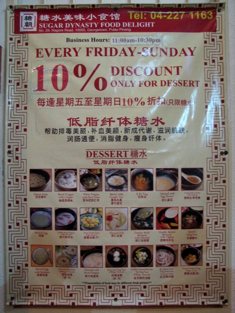 My first time visit to the Sugar Dynasty Food Delight was during the Raya holiday last year. It was at night time after my dinner. I was accompanied by one of my friend. Before entering, you can see a poster on the left of the entrance, showing that: for Friday to Sunday, 10% discount will be given to the desserts.