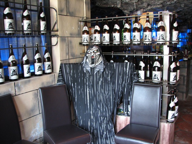 I felt the darkness when I first step into the restaurant. It was a bit dark inside. Just after you stepped into the restaurant, you can see a lot of wine on the rack and a Japanese ghost figure on the left hand side.