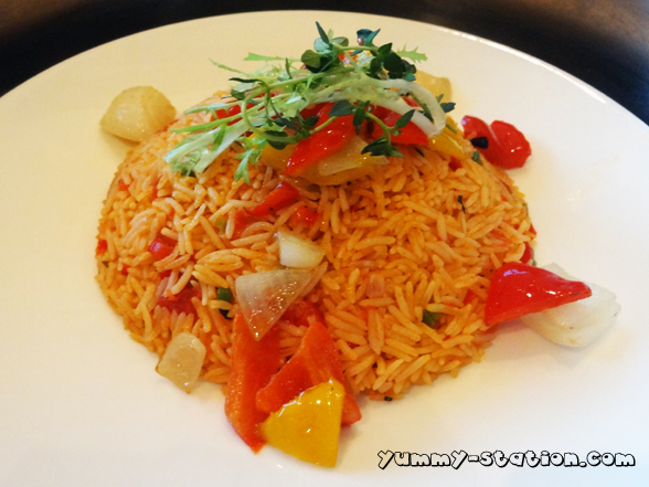 Spanish Butter Rice with Nut. As you can see, the rice used is not the normal rice. The butter rice is fragrant and nice to eat with the seabass and chicken!