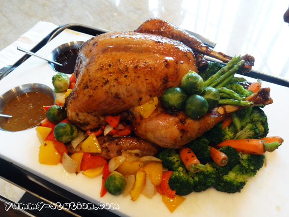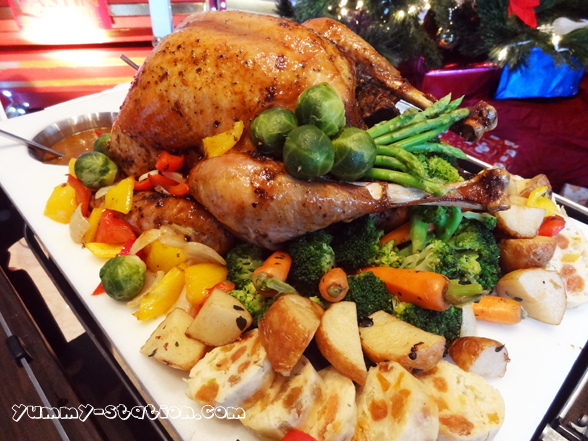 Here comes the main item of the night, WHOLE ROASTED TURKEY!!! It comes with vegetables and potato, together with the Cranberry sauce and Giblet gravy.