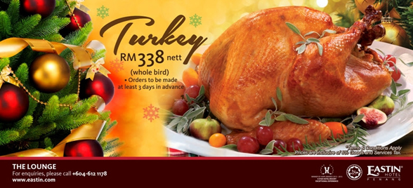 Turkey to Go. You can order the whole roasted Turkey @ RM338 nett. Orders to be made at least 3 days in advance.