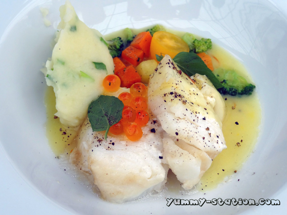 Seafood Veloute & Chive Pomme Puree. For those who prefer fish to meat, this will be the choice for you (as the other 2 choices will be beef and lamb). As you can see, the Cod fish is accompany with the fish roes. The Cod fish is fresh and I like the smooth texture. The fish roes are an add on, it will burst in your mouth when you eat it.
