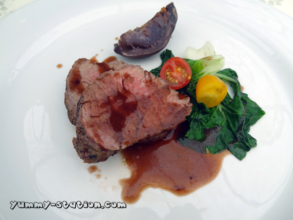 Australia Potato Crisps & Aujus. It’s prepared and served in medium rare. I seldom eat medium rare for beef but this Panseared Grain Fed Tenderloin is so tender. It’s served with the Australian Potato Crisp.